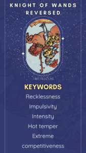 Currently own a business? The King of Wands reversed can indicate issues with leadership, branding, or public image. Maybe you’re trying to control too much, micromanage, or losing focus of your “why.” Or maybe pride is preventing you from delegating. In any case, things are going in the direction of chaos or ego. Step back. A genuine leader empowers, rather than overpowers. –