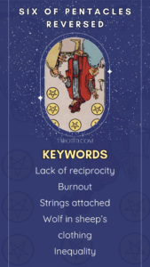 Read on as we examine the Six of Pentacles reversed in various contexts.