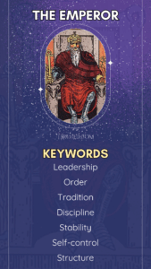 Getting The Emperor in a tarot card reading symbolizes structure, authority, and control. The Emperor is the builder, protector, enforcer, but may at times be a rigid one. This energy is grounded in logic, rules, and tradition. It offers safety, but can become cold or overbearing if unbalanced. He represents the father archetype, leadership, and power used to create order. Things feel stable, or at least tightly managed.