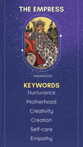 In an existing relationship, this card shows a period of growth in your relationship. This could be the “next step”, like having a child, moving in together, or becoming engaged. The Empress encourages both you and your partner to nurture each other. But it’s also a reminder to not lose yourself in caring for your partner. Be mindful to keep your own identity.